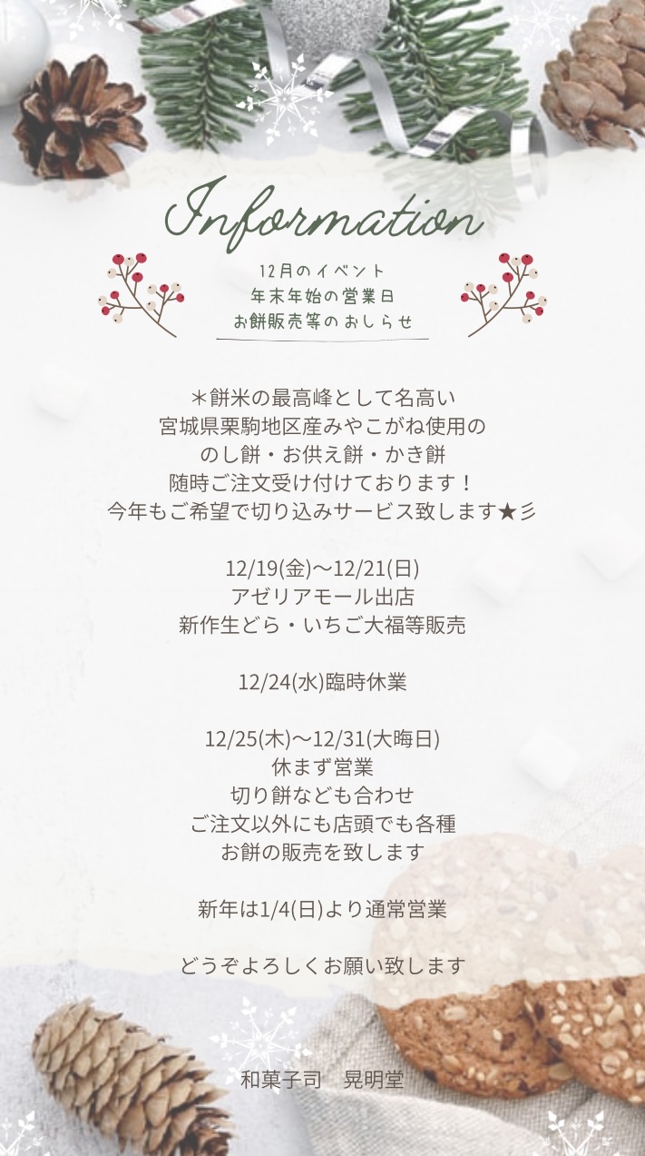 また、年末のお餅のご注文も随時承っております!お値段など詳しくは商品一覧のページにて記載がございます。お電話やDMなどでもどうぞお気軽にお問い合わせ下さい。
