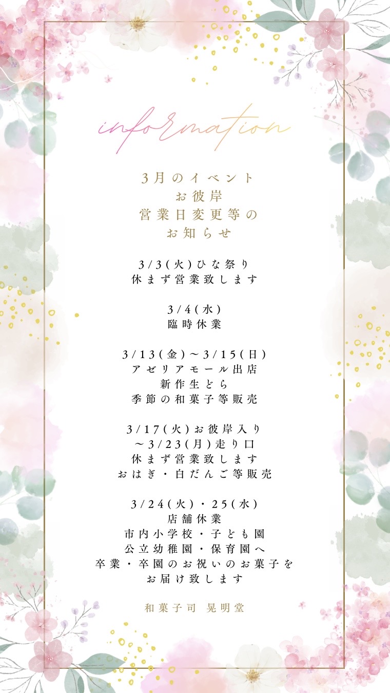 3月はたくさん行事がございますが、それぞれに大切な日、心を込めてまたお届けしたいです。